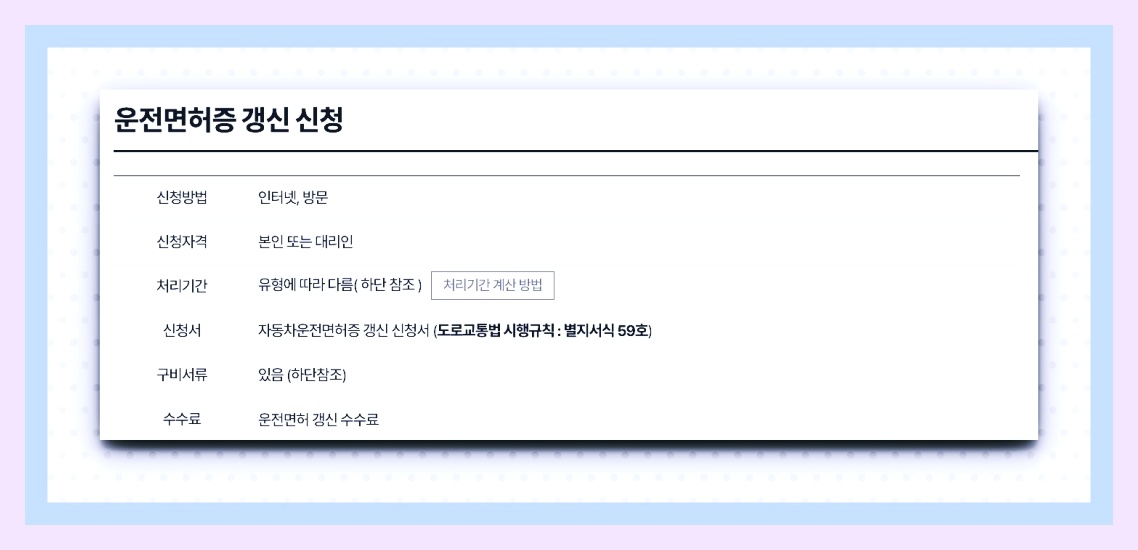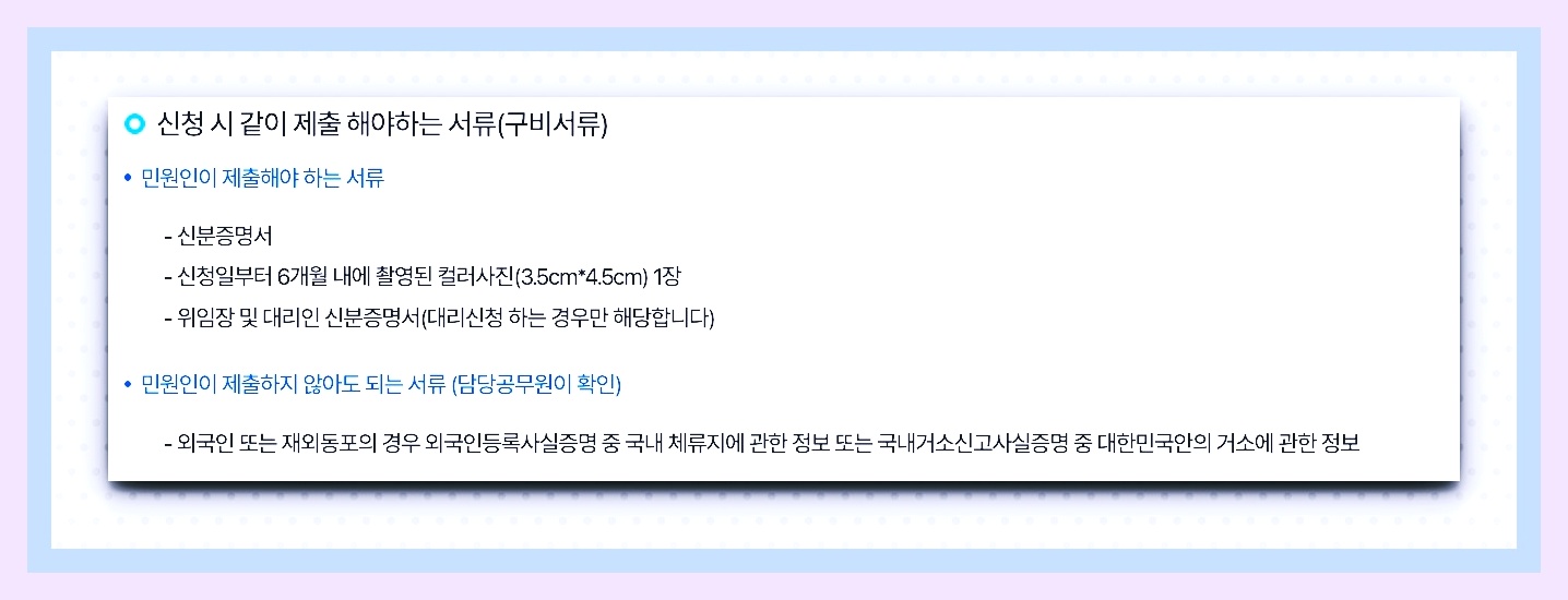 - 신분증, 증명사진, 갱신 수수료를 준비하세요.